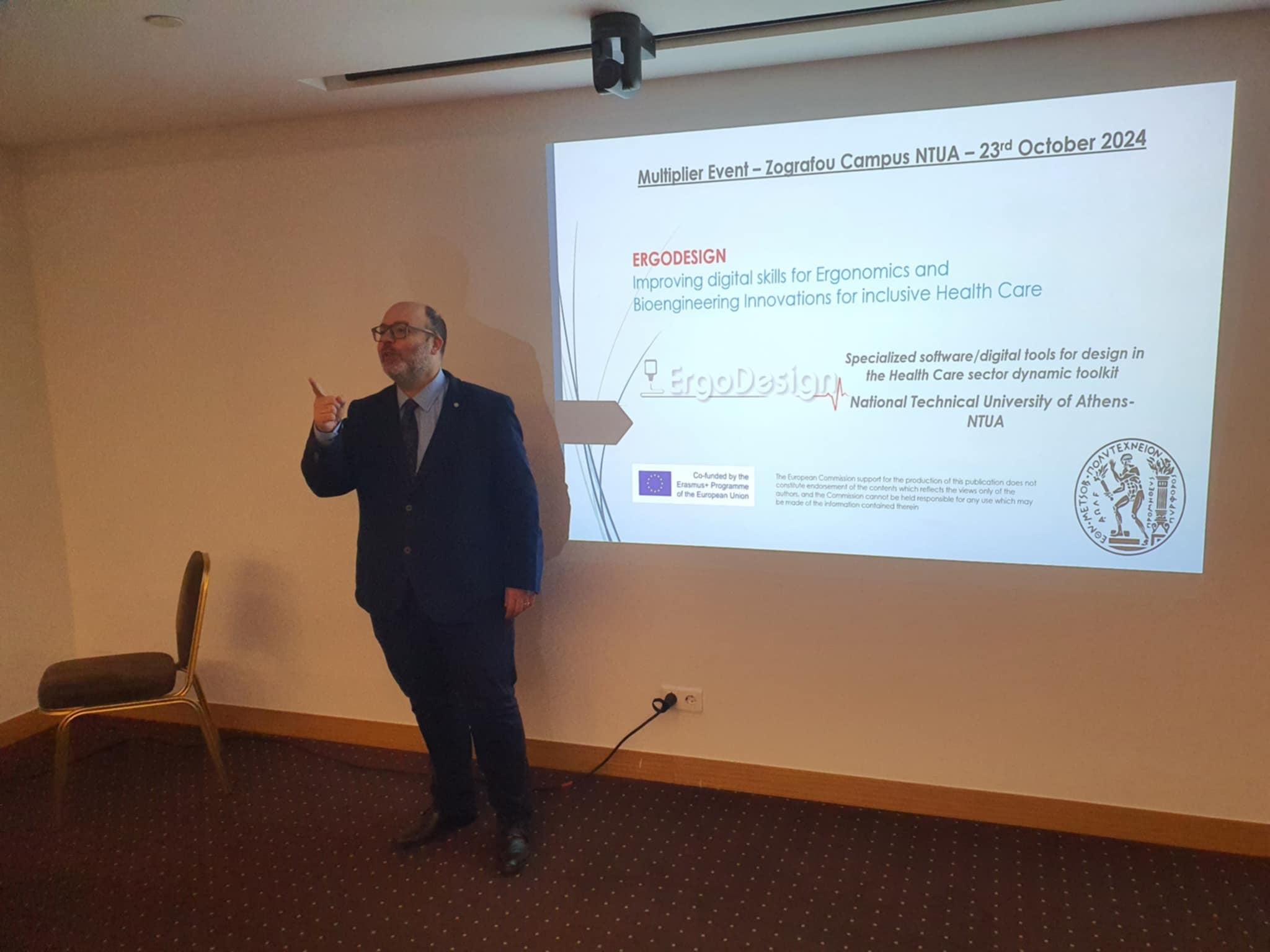 The multiplier event of the ERASMUS+ 2021-1-PL01-KA220-HED-000031182 "ErgoDesign – Improving digital skills for Ergonomics and Bioengineering Innovations for inclusive Health Care" was successfully organized by NTUA in Athens on October 23th, 2024. Many participants had the opportunity to learn about the aims and results of the project. The conference included comprehensive presentations of all Intellectual Outputs, and feedback from attendees was very positive.